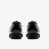 Introducing the Patent Pack, a stunning collection that showcases the elegance of crackled patent leather in iconic silhouettes: The Wallabee™. Designed for those who appreciate timeless style with a modern twist. The Wallabee™ is a classic style re-imagined in a crackled patent upper, showcasing a timeless moccasin construction that emphasizes craftsmanship and comfort. It comes with two FOBS—Clarks Originals and Wallabee™—along with a sleek silver metal FOB for added distinction. The flat tonal lace and sprayed black natural pebble crepe sole ensure durability and traction, making this shoe an ideal choice for any casual outing. Embrace the chic aesthetic of crackled patent soft leather and elevate your footwear collection with this versatile style. - Crackled patent upper - Moccasin construction - Two FOBS – Clarks Originals and Wallabee™ - Silver metal FOB - Flat tonal lace - Natural pebble crepe sole sprayed black. Materials Upper Material: Leather Lining Material: Textile Sole Material: Crepe Midsole Material: Crepe/EVA Fastening Type: Lace Sock Material: Leather