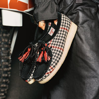 Introducing the Clarks Wallabee™ Harris Tweed Pack, a distinguished blend of heritage and contemporary style. This edition features premium Harris Tweed on the quarter panels, paired with suede on the vamp, collar, and apron binding, offering a refined mix of textures. The iconic natural pebble crepe sole ensures comfort and durability, staying true to Clarks Originals' tradition. The attention to detail is highlighted with three exclusive FOBs—Clarks Originals, Wallabee™, and a commemorative 200-year FOB—celebrating the brand’s storied history. For added versatility, the pack includes two sets of laces, with sleek black matte eyelets and unique red tassels and a detachable kiltie for a bold, customizable look. Inside, the authentic Harris Tweed woven label is sewn into the quarter, alongside Harris Tweed hang tags, marking the collaboration's rich heritage. The Clarks Originals woven sock label and moccasin construction ensure superior comfort and authenticity. - Harris tweed on quarter panels, suede on vamp, collar and apron binding - Natural pebble crepe sole - Three FOBS – Clarks Originals, Wallabee™ and 200 years - Two laces - Harris Tweed woven label sewn into inside quarter - Harris Tweed hang tags - Clarks Originals woven sock label - Moccasin construction - Black Matt eyelets Materials Upper Material: Combined Lining Material: Textile Sole Material: Crepe Midsole Material: EVA Fastening Type: Lace Trims: Tassel Stud Sock Material: Leather