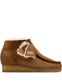 Wallabee "Brown" boots Highlights - Tobacco brown - Calf suede - Front lace-up fastening - Logo tag - Apron toe - Shearling lining - Branded footbed - Crepe rubber sole Imported Composition Outer: Calf Suede 100% Sole: Rubber 100% Lining: Sheep Skin/Shearling 100%