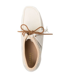Wallabee lace-up fastening boots off-white suede contrast stitching round toe front lace-up fastening branded insole flat rubber sole Imported Composition Body: Suede 100% SIZE & FIT Measurement HEEL 1.18 in(3 cm)