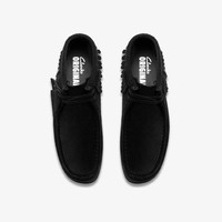 Introducing the Wallabee™ Wedge Fringe, designed as a perfect companion to the Trek Fringe and a standout piece in the AW25 Somerset Nights collection. This mid-cut boot silhouette offers a unique blend of classic Clarks Originals design with a modern twist, making it a must-have for the season. Available in black suede, the Wallabee™ Wedge Fringe features a premium moccasin construction with hand-stitched apron seam, ensuring the utmost quality and durability. The elegant tonal suede fringing adds texture and movement, while the tonal lace with beautiful bead detail offers a refined touch. Designed for comfort and style, the shoe is equipped with a smooth natural and black crepe soles paired with a tonal rubber outsole for excellent grip and support. Two signature FOBS—Clarks Originals and Wallabee™ —enhance its authenticity and style. Elevate your wardrobe with the Wallabee™ Wedge Fringe, where timeless design meets modern flair, perfect for taking on the season in style. - Moccasin construction - Hand stitched apron seam - Tonal suede fringing - Tonal lace with bead detail - Smooth natural and black crepe - Tonal rubber outsole - Two FOBS – Clarks Originals and Wallabee™ - Heat embossed metallic foil Clarks Originals logo on sock Materials Upper Material: Suede Lining Material: Leather Sole Material: Rubber Midsole Material: Crepe/EVA Fastening Type: Lace Trims: Beads Sock Material: Leather