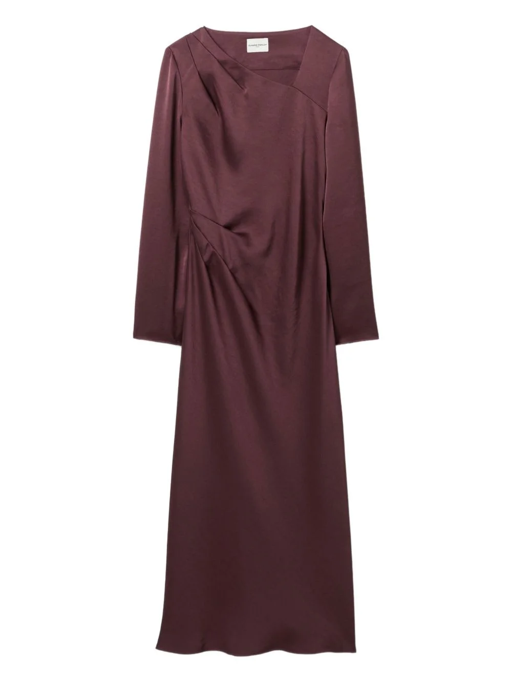 asymmetric-neckline gathered dress Highlights - Aubergine - Asymmetric neckline - Gathered detail - Long sleeves - Midi length Imported Composition Lining: Polyester 54%, Viscose 46% Outer: Polyester 100% Washing instructions Read Manufacturer Guidelines