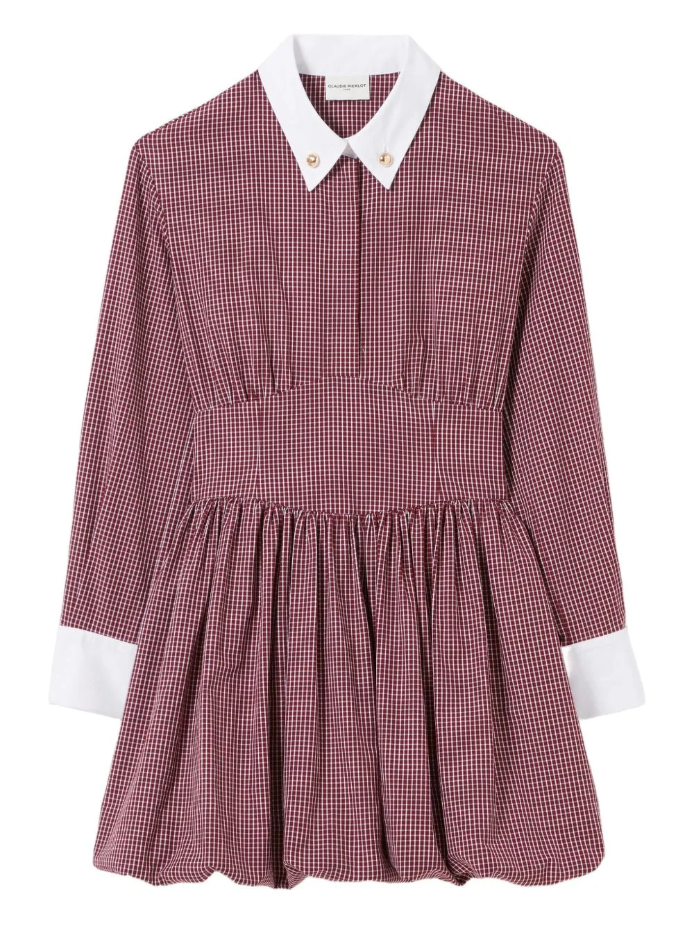 mini checked dress Highlights - Burgundy - Concealed button placket - Contrasting collar - Side zip fastening - Waist yoke - Gathered detailing - Bubble skirt Imported Composition Lining: Polyester 65%, Cotton 35% Outer: Cotton 100% Washing instructions Machine Wash