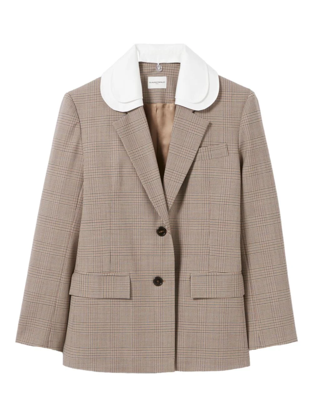 checked tailored blazer Highlights - Beige - Detachable peter pan collar - Front button fastening - Front flap pockets - Single chest pocket - Rear vent Imported Composition Outer: Wool 55%, Polyester 41%, Elastane 4% Lining: Polyester 54%, Viscose 46% Cotton 100% Washing instructions Dry Clean Only