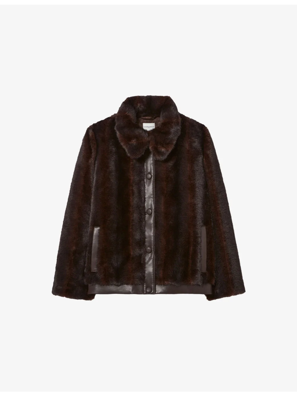 PRODUCT DETAILS - Claudie Pierlot faux-fur coat - 100% polyester - Exposed button fastening at front - Relaxed fit, collared, long sleeves, contrast trim, two pockets at the side - Dry clean - True to size - Model is 5ft 9in/1.75m and wears a size UK 8 - Midweight, non-stretch Ref: R04532144