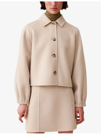 PRODUCT DETAILS - Claudie Pierlot wool-blend jacket - 80% wool, 20% polyamide - Button fastening - Regular fit, collar, raglan sleeves, elasticated cuffs, cropped - Dry clean - True to size - Midweight, slight stretch Ref: R04321094