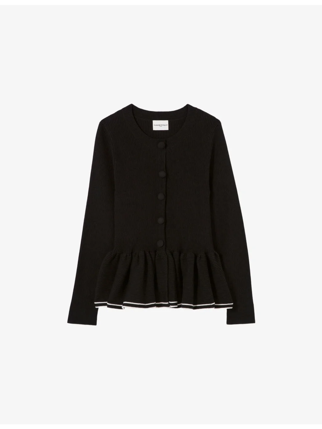 PRODUCT DETAILS - Claudie Pierlot knitted cardigan - 43% viscose, 42% polyamide 15% wool - Exposed button fastening at front - Slim fit, round neck, long sleeves, frill hem with contrast - Hand wash cold - True to size - Midweight, non-stretch Ref: R04508888
