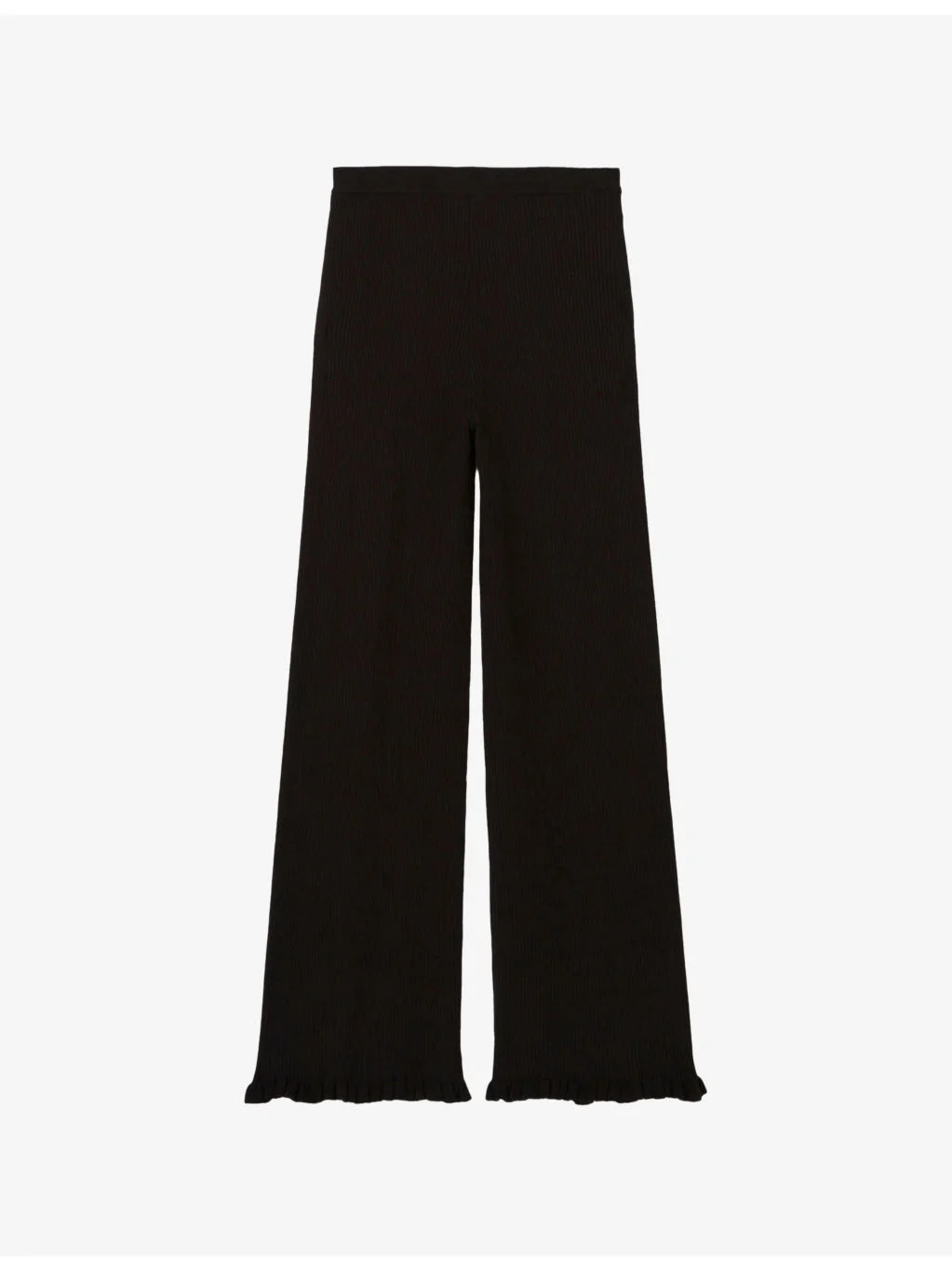 PRODUCT DETAILS - Claudie Pierlot stretch-knit trousers - 59% lyocell, 22% wool, 16% polyamide, 3% elastane - Slim fit, mid rise, straight leg, flared leg, frilled trim to hems, all-over ribbed knit - Hand wash - True to size - Midweight, slight stretch Ref: R04508824