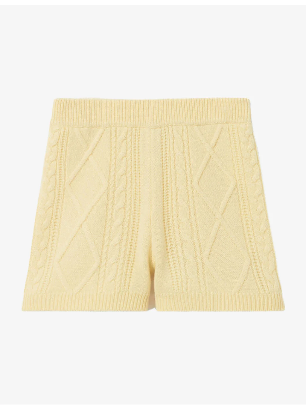 PRODUCT DETAILS - Claudie Pierlot wool and cashmere-blend shorts - 93% wool, 7% cashmere - Slim fit, high rise, elasticated waist, ribbed trims, all-over jacquard cable-knit design - Hand wash - True to size - Midweight, slight stretch Ref: R04508926