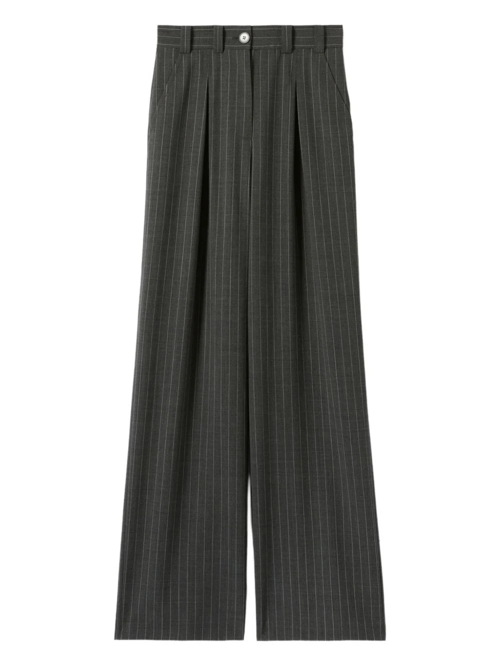 pinstripe pleated trousers Highlights - Charcoal grey - Pinstripe pattern - Pleated front - Button fly - Side pockets Imported Composition Outer: Polyester 53%, Virgin Wool 43%, Elastane 6% Lining: Polyester 54%, Viscose 46% Washing instructions Dry Clean Only