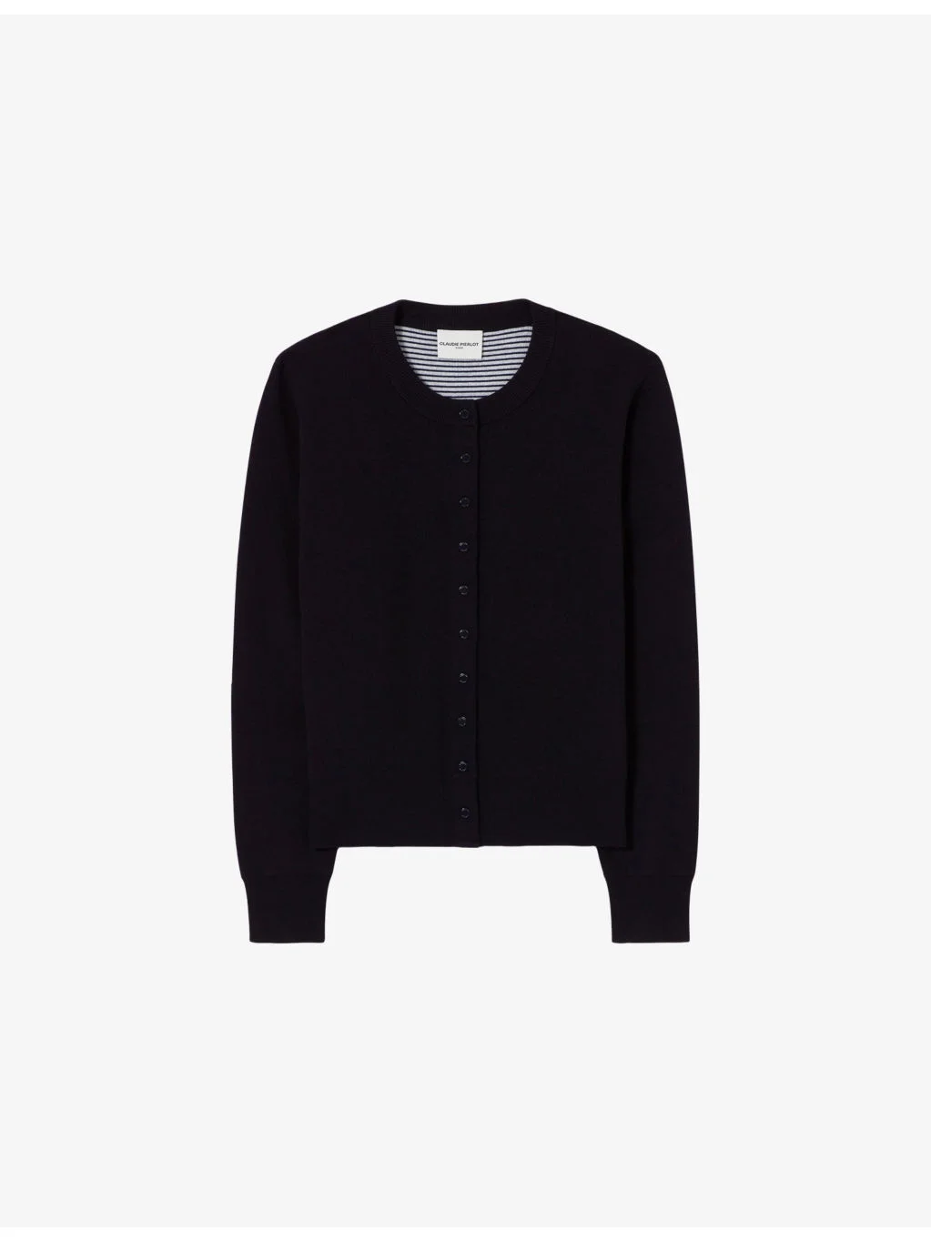 PRODUCT DETAILS - Claudie Pierlot wool-blend cardigan - 50% wool, 34% cotton, 16% polyamide - Pressed stud fastening - Regular fit, round-neck, long sleeves, knitted - Hand wash - True to size - Model is 5ft 10in/1.78m and wears a size UK 8 - Lightweight, slight stretch Ref: R04508861