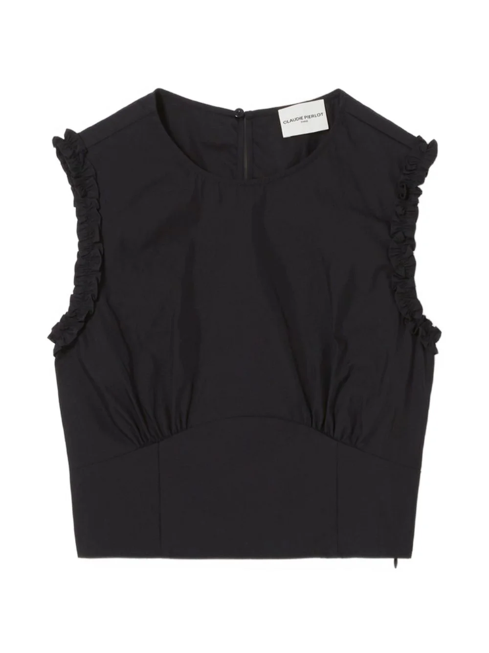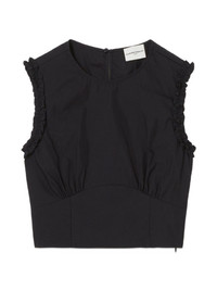 ruffled blouse Highlights - Navy blue - Ruffle trim - Sleeveless - Round neck Imported Composition Cotton 75%, Polyamide 25% Washing instructions Read Manufacturer Guidelines