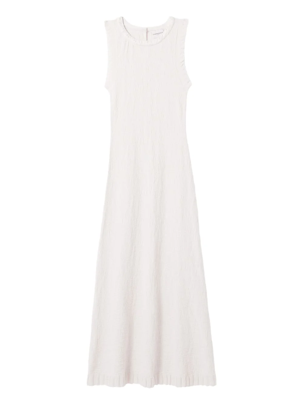 ruffled-trim midi dress Highlights - Off-white - Textured knit - Ruffled trims - Round neck - Sleeveless Imported Composition Viscose 53%, Polyamide 45%, Lycra 2% Washing instructions Hand Wash