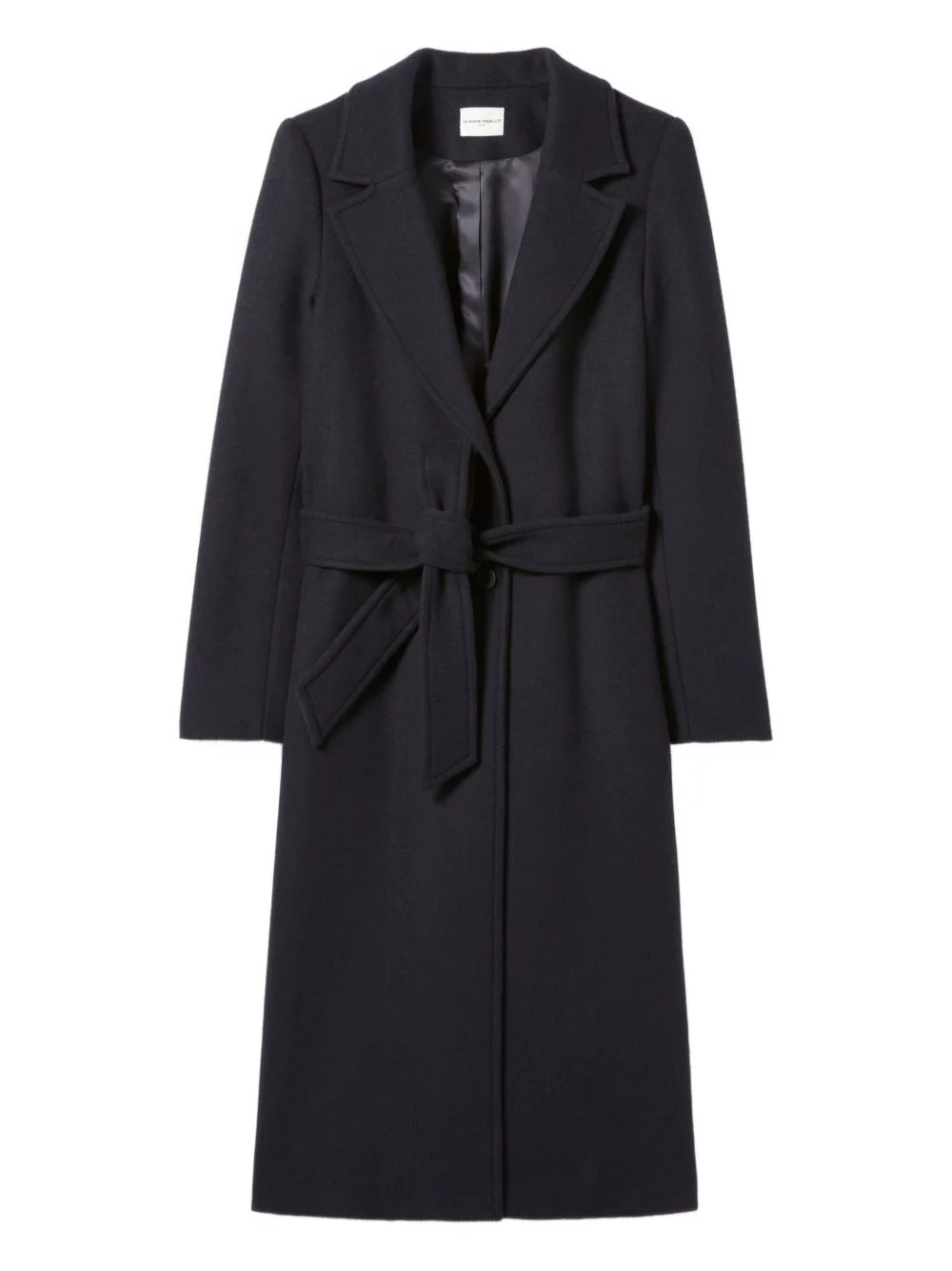 belted coat Highlights - Navy blue - Notched lapel - Self-tie belt - Single breasted - Long sleeves Imported Composition Wool 70%, Polyamide 30% Washing instructions Read Manufacturer Guidelines