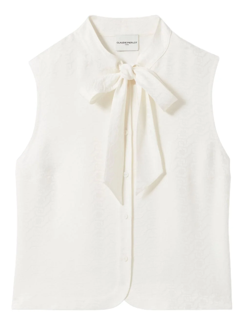 sleeveless bow-neck top Highlights - Off-white - Textured weave - Bow neck tie - Button front fastening - Sleeveless Imported Composition Lining: Polyester 54%, Viscose 46% Outer: Viscose 100% Washing instructions Read Manufacturer Guidelines
