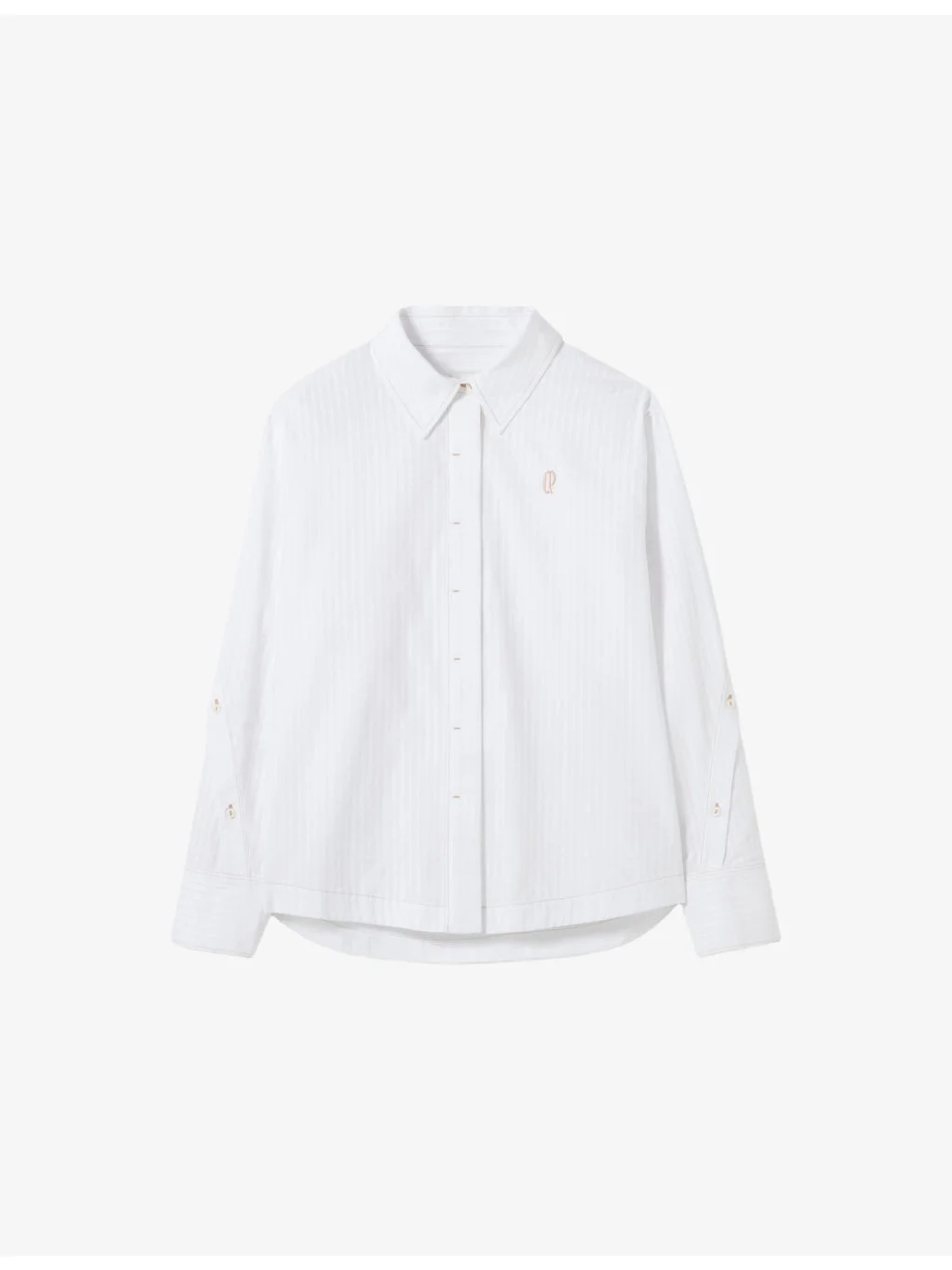 PRODUCT DETAILS - Claudie Pierlot cotton shirt - 100% cotton - Button fastening - Relaxed fit, classic collar, long sleeves, striped, logo at front, button cuffs - Machine wash cold - True to size - Lightweight, non-stretch Ref: R04599304