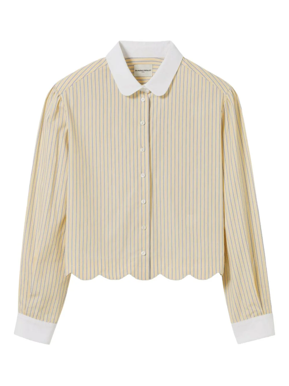 striped shirt Highlights - Yellow and white - Vertical stripes - Scalloped hem - Classic collar - Button fastening - Puffed sleeves Imported Composition Cotton 100% Washing instructions Machine Wash