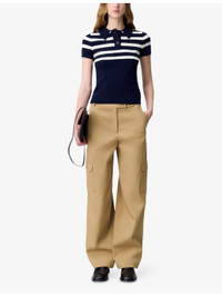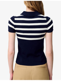 PRODUCT DETAILS - Claudie Pierlot stretch-knit polo shirt - 41% acrylic, 38% wool, 19% polyamide, 2% elastane - Exposed button fastening at front - Slim fit, collar, short sleeves, three-button placket, striped top, knitted texture - Hand wash - True to size - Midweight, slight stretch Ref: R04496007
