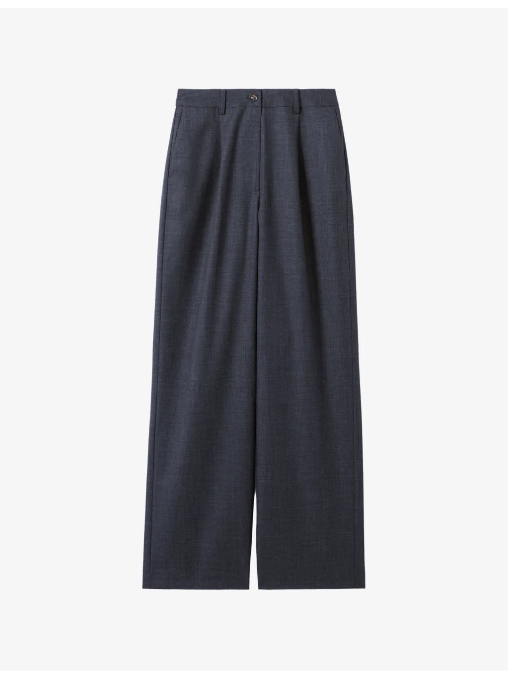 PRODUCT DETAILS - Claudie Pierlot wool-blend trousers - 72% polyester, 28% wool - Exposed button and concealed zip-fly fastening at front - Relaxed fit, high rise, belt loops, two pockets at the side, wide leg, tailored design, pleats at the front - Dry clean - True to size - Midweight, non-stretch Ref: R04508882