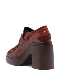 100mm Netta loafers Highlights - Chestnut brown - Calf leather - Patent finish - Slip-on style - 100mm block heel - Strap detailing - Debossed logo to the front - Moc stitching - Decorative stitching - Almond toe - Branded leather insole - Contrast lining - Platform sole Made in France Composition Leather 100% SIZE & FIT Measurement HEEL 3.93 in(10 cm) PLATFORM 1.57 in(4 cm)