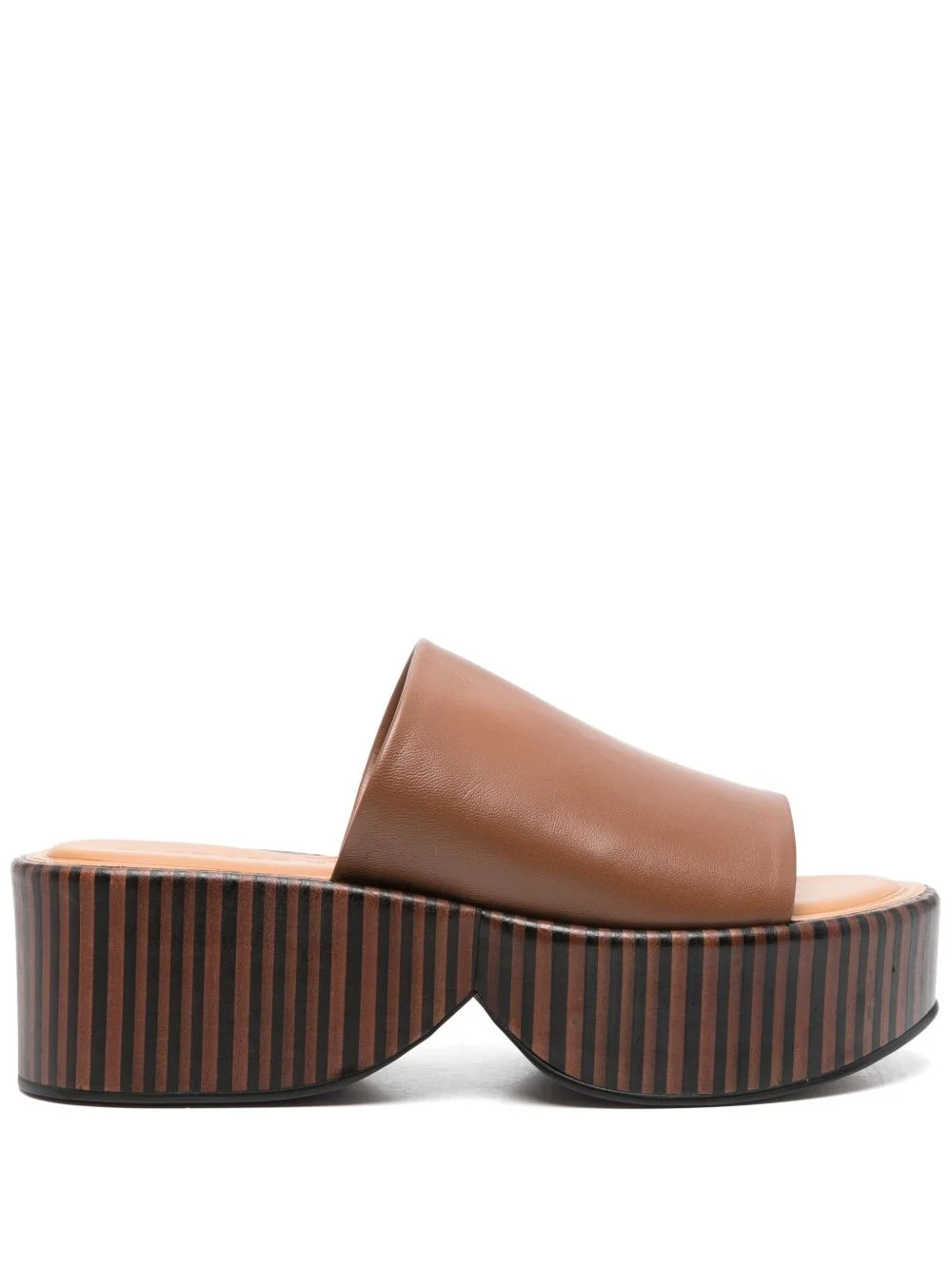 65mm First sandals Highlights - Chocolate brown - Branded leather insole - Platform sole - Rubber outsole Imported Composition Outer: Calf Leather 100% Lining: Calf Leather 100% Sole: Rubber 100% SIZE & FIT Measurement HEEL 2.36 in(6 cm) PLATFORM 1.18 in(3 cm)