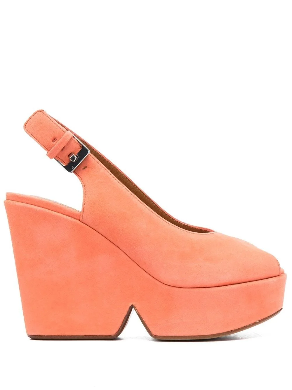 110mm Dylan pumps Highlights - Peach orange - Calf suede - Open toe - Buckle-fastening ankle strap - Branded leather insole - Platform sole - High wedge heel Imported Composition Suede 100% SIZE & FIT Measurement HEEL 4.33 in(11 cm) Sole height 1.25 in(3.2 cm)