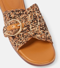 Clergerie's unconventional yet elegant footwear has been designed and manufactured in France for over 40 years. Made with raffia uppers atop leather soles, the Irme slides are no exception. Product Details - Upper: raffia - Lining: leather - Sole: leather insole, rubber sole - Toe shape: round open toe - Made in Morocco - Includes: shoe box - Designer color name: Wood - Item color: brown - Trim: leather - Hardware color: gold - Item number: P00995036 Size & Fit - True to size - European sizes - 2cm-1" heel (size EU 38)