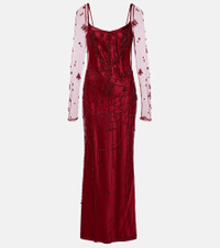 A treasure trove of sparkle, Clio Peppiatt is anything but ordinary. The Chandelier gown is made from lustrous fabric with sheer tulle sleeves and intricate crystal and beaded embellishments. Product Details - Material: 100% nylon - Care instructions: dry clean - Made in India - Color: red - Designer color name: Cabernet/Crystal - Item color: burgundy - Closure: concealed zipped back - Includes: garment bag - Item number: P01107170 Size & Fit - True to size - Low back - Fitted - Non-stretchy fabric - The model seen in the picture is 178cm-5'10" and wearing a size XS