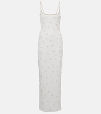 French designer Clio Peppiatt is known for designs like this Droplet gown, which combine impressive beadwork with sleek, modern silhouettes. This form-fitting style is especially noteworthy for its all-over crystal embellishments and faux pearl beading. Product Details - Material: 92% polyester, 8% elastane - Care instructions: dry clean - Made in India - Color: white - Designer color name: Ivory - Item color: ivory - Closure: zipper, hook fastening - Fully lined - Item number: P01053871 Size & Fit - True to size - Low back - Fitted - Slightly stretchy fabric - slit length 56cm-22" - Height of model is 180cm-71" and wears a size XS