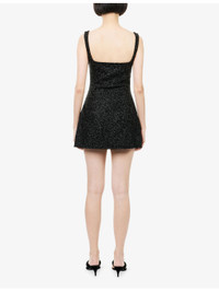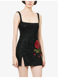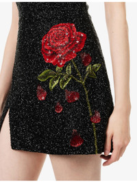 PRODUCT DETAILS - Harry Lambert for Clio Peppiatt x Disney bead-embellished mini dress - 84% polyester, 16% elastane - Concealed zip fastening at side - Slim fit, square neck, shoulder straps, rose graphic at front, front slit, fully lined, all-over bead embellishments, mini length - Specialist dry clean only - Made in India - Size small: length 28in / 71cm - Model is 5ft 10in/1.78m and wears a size small - Heavyweight, non-stretch Ref: R04540122