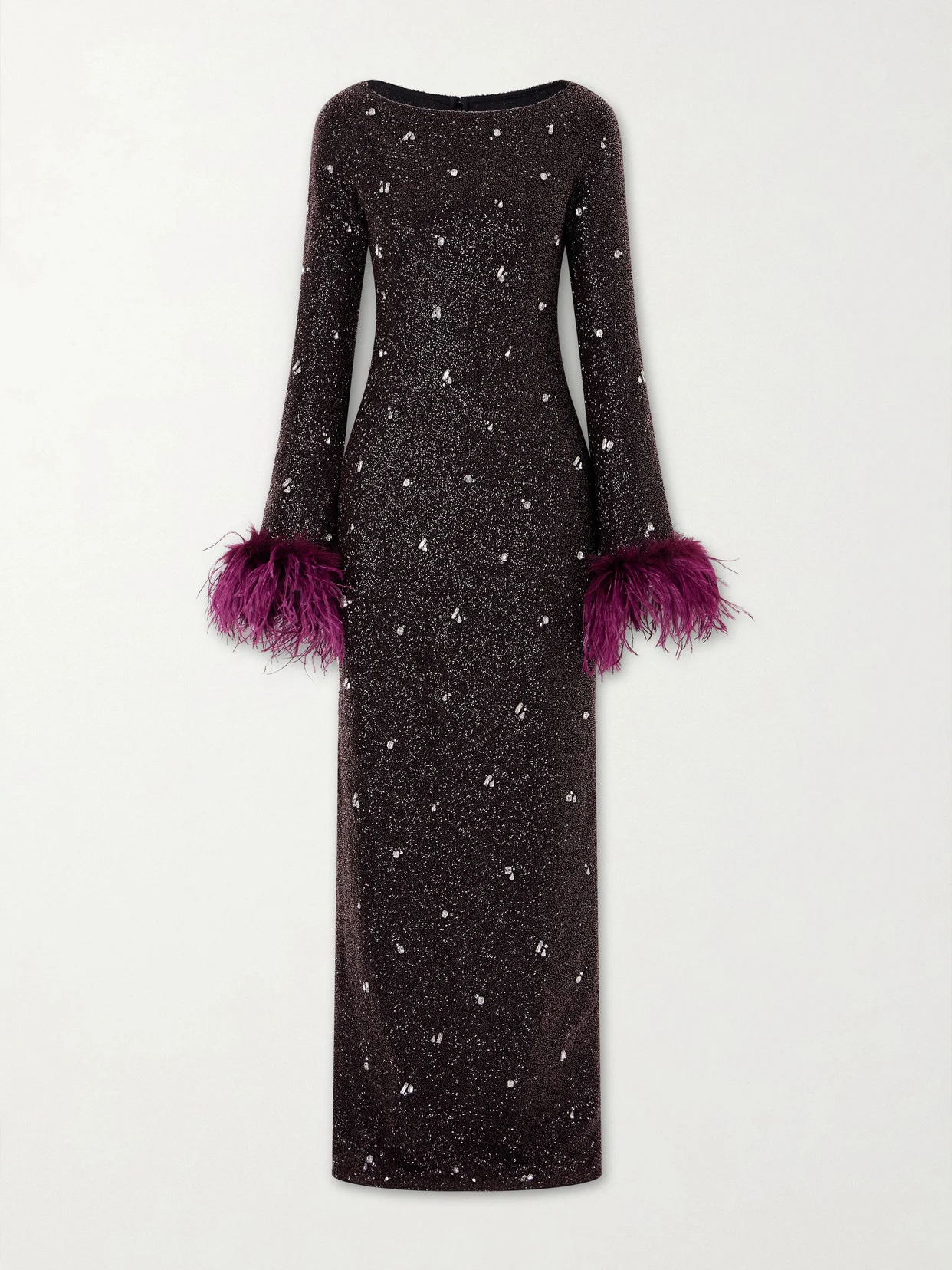 Mae Feather-trimmed Embellished Beaded Tulle Gown