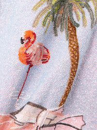 Clio Peppiatt's dress "channels the playful glamour and fantasy of South Beach". Made from tulle, it's hand-embellished with colorful beads and a handful of faux pearls to depict a retro Cadillac - in pink of course - as well as shells, tropical palm trees and flamingos. The sweetheart neckline is perfect for displaying a dainty necklace, while the split mini hem shows a flash of thigh when you walk. Responsible Craftsmanship. This product promotes artisanal skills and a brand that invests in communities and adheres to fair-trade principles. Find out more about our NET SUSTAIN criteria here.