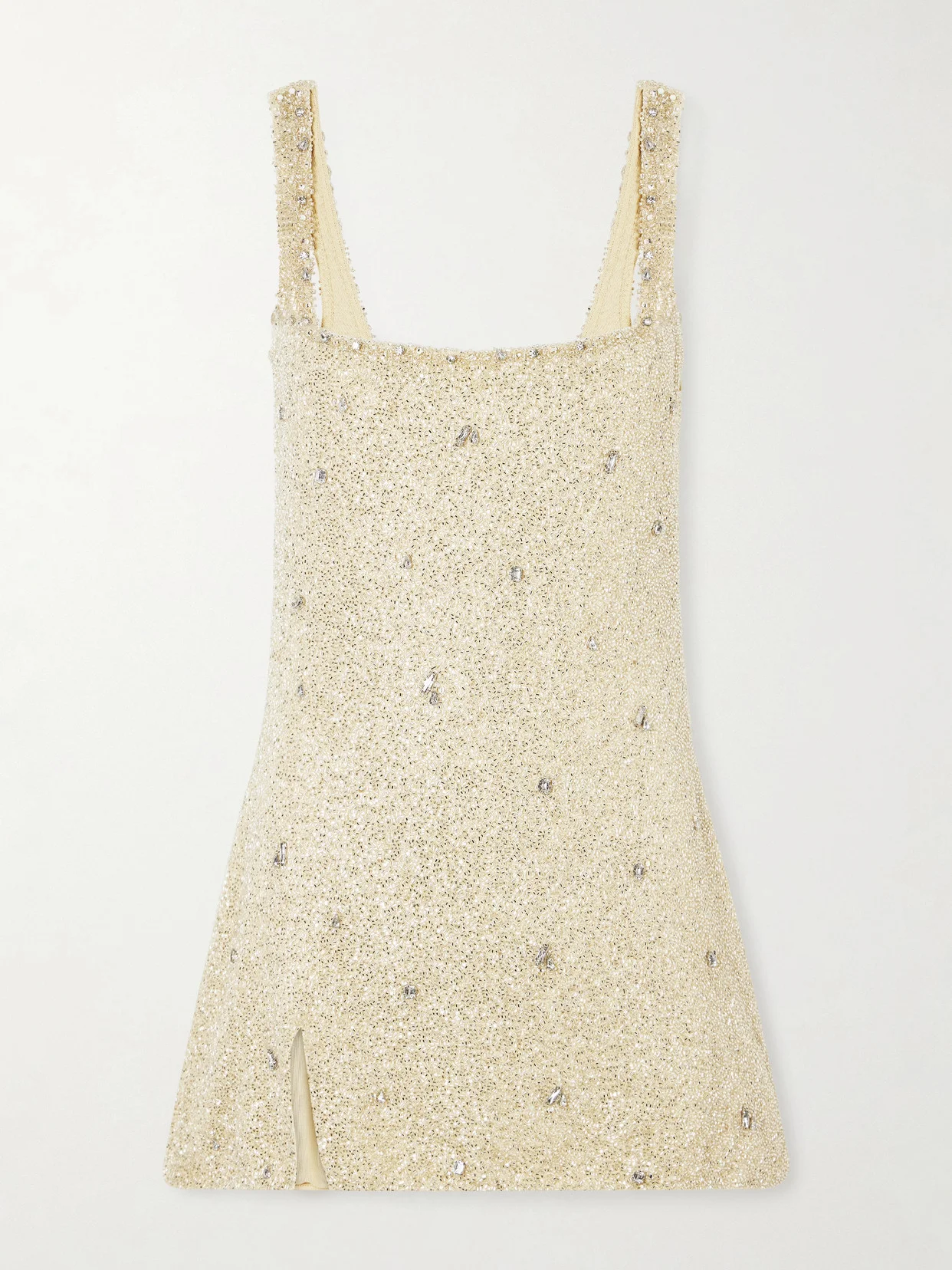 Pamela Crystal-embellished Beaded Tulle Mini Dress
