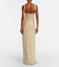 A treasure trove of sparkle, Clio Peppiatt is anything but ordinary. The Pamela gown gracefully sculpts the silhouette and creates a striking effect with its all-over embellishments and deep front slit. Product Details - Material: 84% polyester, 16% elastane - Care instructions: specialist clean - Made in India - Color: beige - Designer color name: Platinum - Item color: beige - Closure: invisible zipper - Includes: dust bag - Item number: P01107177 Size & Fit - True to size - Fitted - Slightly stretchy fabric - The model seen in the picture is 178cm-5'10" and wearing a size XS