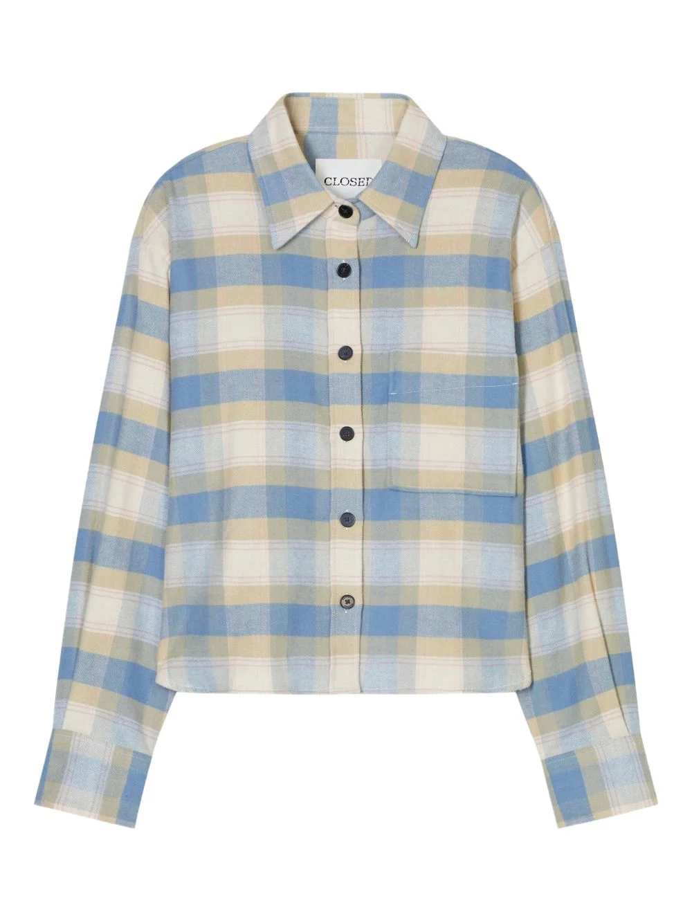 plaid shirt Highlights - Light blue - Front button fastening - Chest patch pocket - Oversized pointed collar - Cropped Imported Composition Cotton 100% Washing instructions Machine Wash