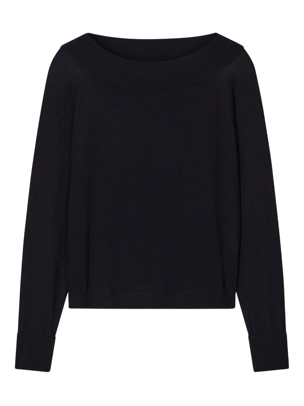 boat-neck long-sleeve sweater black wide neckline long sleeves rib-knit cuffs straight hem wool-silk Imported Composition Lining: Silk 10% Wool 90% Washing instructions Read Manufacturer Guidelines