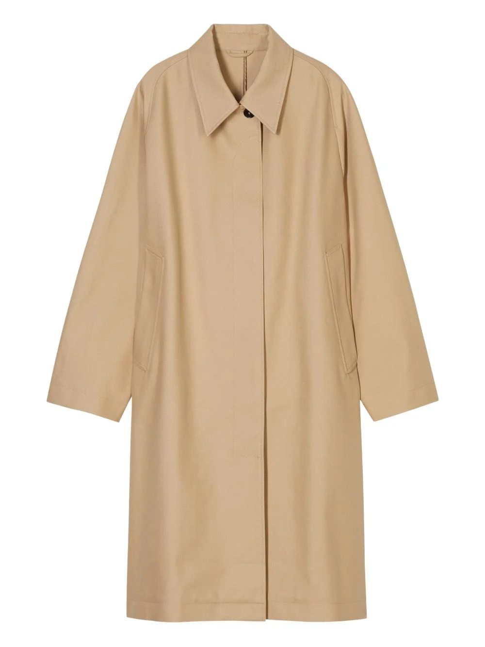 cotton trench coat Highlights - Sesame beige - Concealed front button fastening - Two side welt pockets - Central rear vent - Pointed flat collar Imported Composition Cotton 100% Washing instructions Machine Wash