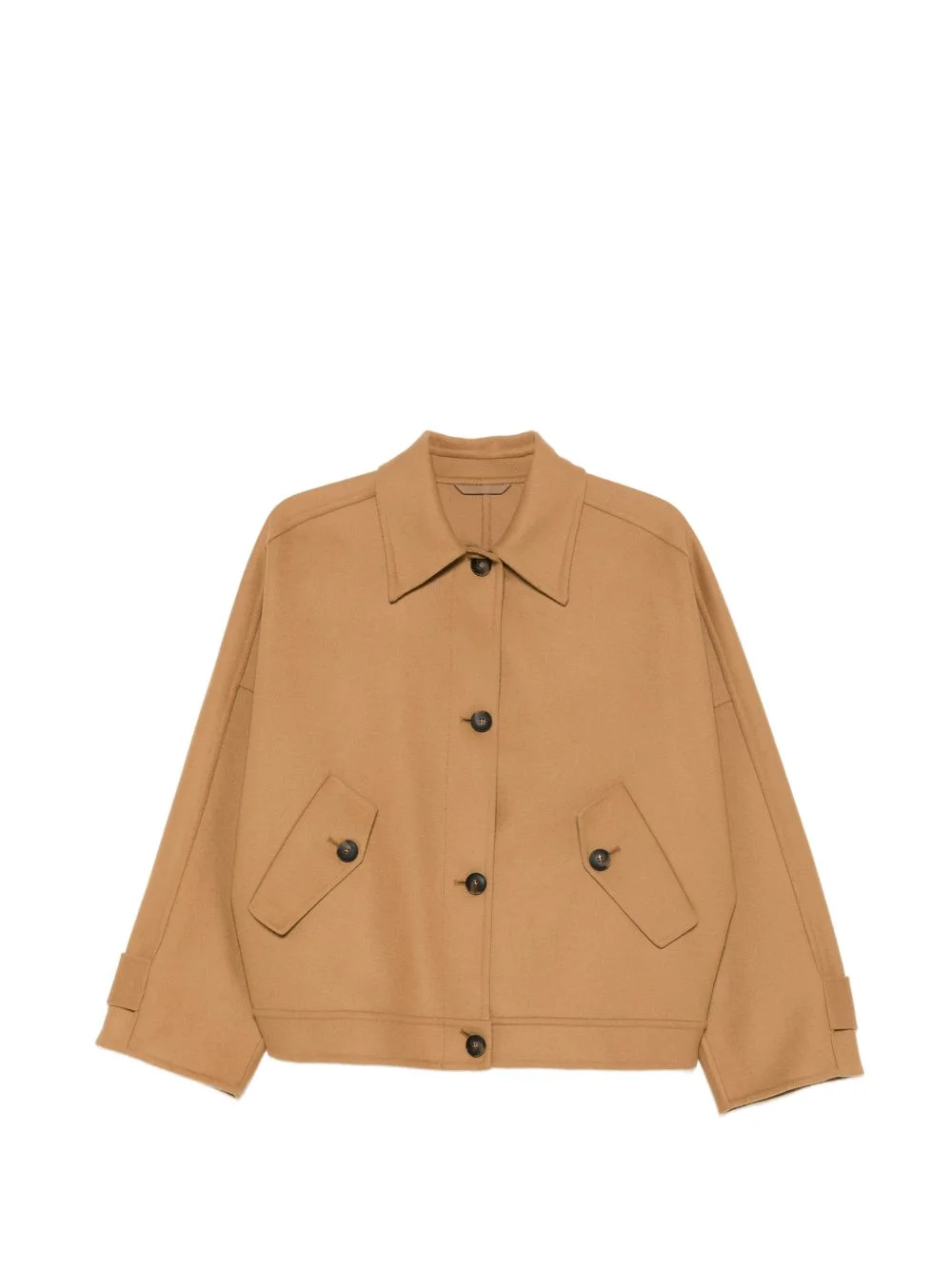 flap-pocket buttoned jacket Highlights - Light brown - Front flap pockets - Front button fastening - Classic collar - Tabs cuffs - Short length Imported Composition Outer: Virgin Wool 75%, Polyamide 25% Lining: Cotton 100% Washing instructions Dry Clean Only