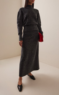 Originally launched in 1968 under C’est ca ('CA' for short) by French fashion designers Marithe and Francois Girbaud, Closed is Italy’s first denim label. Today the contemporary design brand has expanded to sustainably made wardrobe staples that capture the European zeitgeist. Aptly named, this ‘Easy’ skirt is made from a melange knit boasting alpaca and sheep’s wool. It’s minimally designed with a high waist and a gently flared fit through the leg. Wear with the matching sweater. PRODUCT DETAILS - Fall/Winter ‘25 - Slip on - Composition: 32% alpaca, 32% wool, 30% polyamide, 6% elastane - Dry clean - Designer Color: Dark Grey Melange - Imported