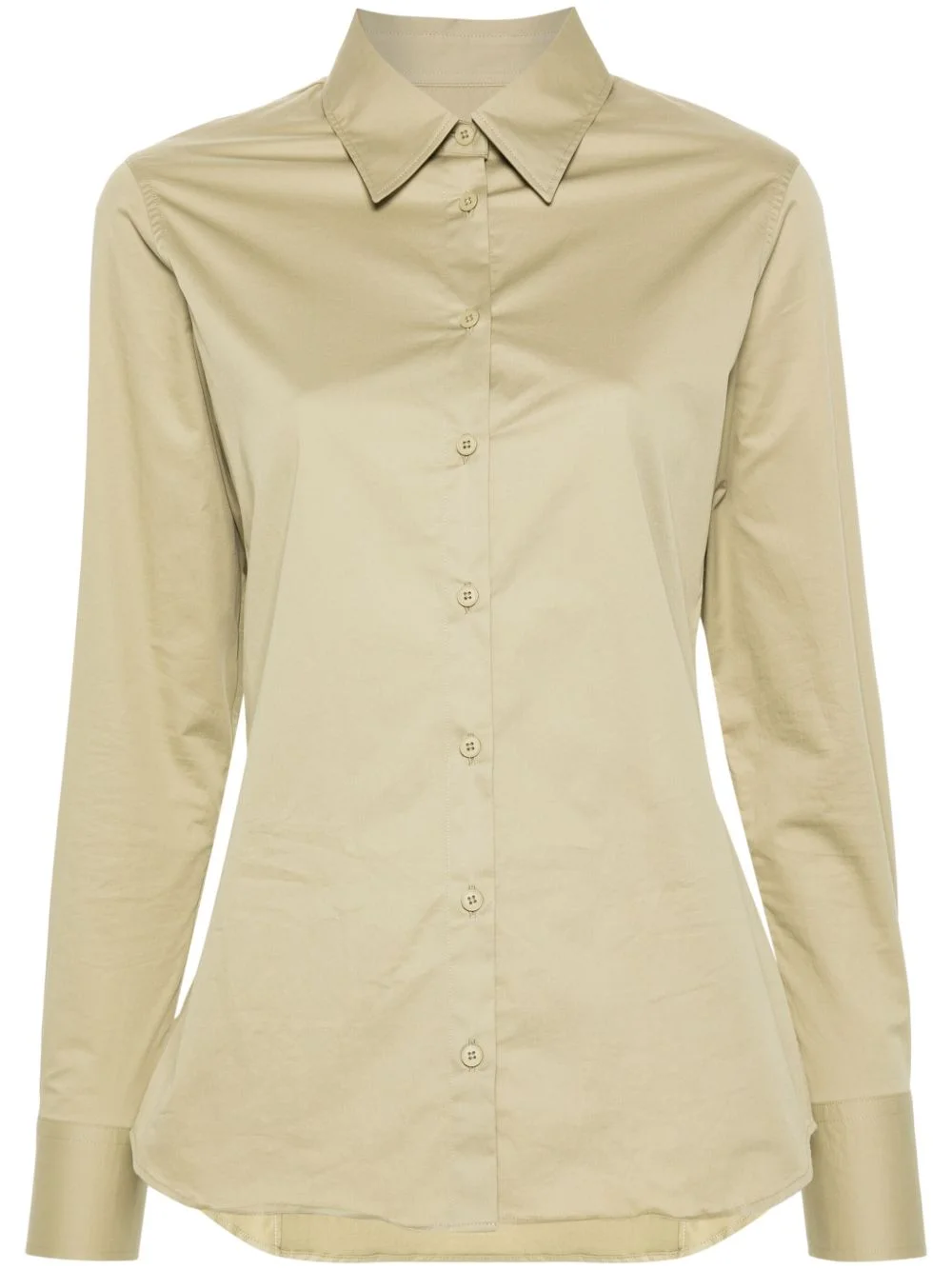 poplin cotton shirt Highlights - Light olive green - Stretch-cotton - Poplin texture - Classic collar - Long sleeves with buttoned cuffs - Curved hem - Front button placket Imported Composition Cotton 96%, Elastane 4% Washing instructions Machine Wash