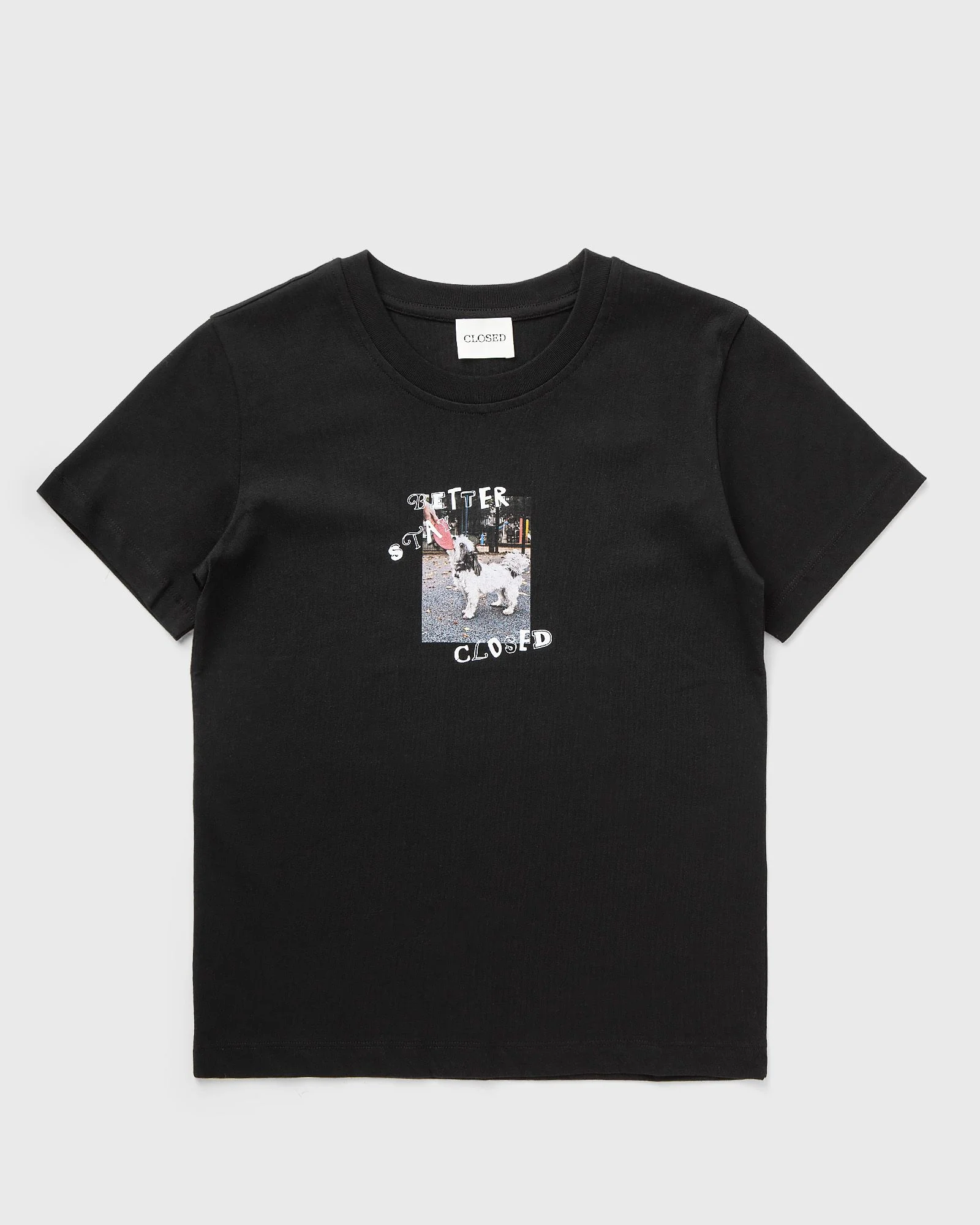 This casual T-shirt from Closed is made from 100% organic cotton and features a ‘Better Stay Closed’ print with a charming dog motif on the chest. The classic ribbed crew neck and straight hem give the shirt a clean, timeless look. - Ribbed crew neck - Short sleeves - Graphic print Article number: C95927-44H-PR-100 Gender: women Color: BLACK Material: 100% Cotton
