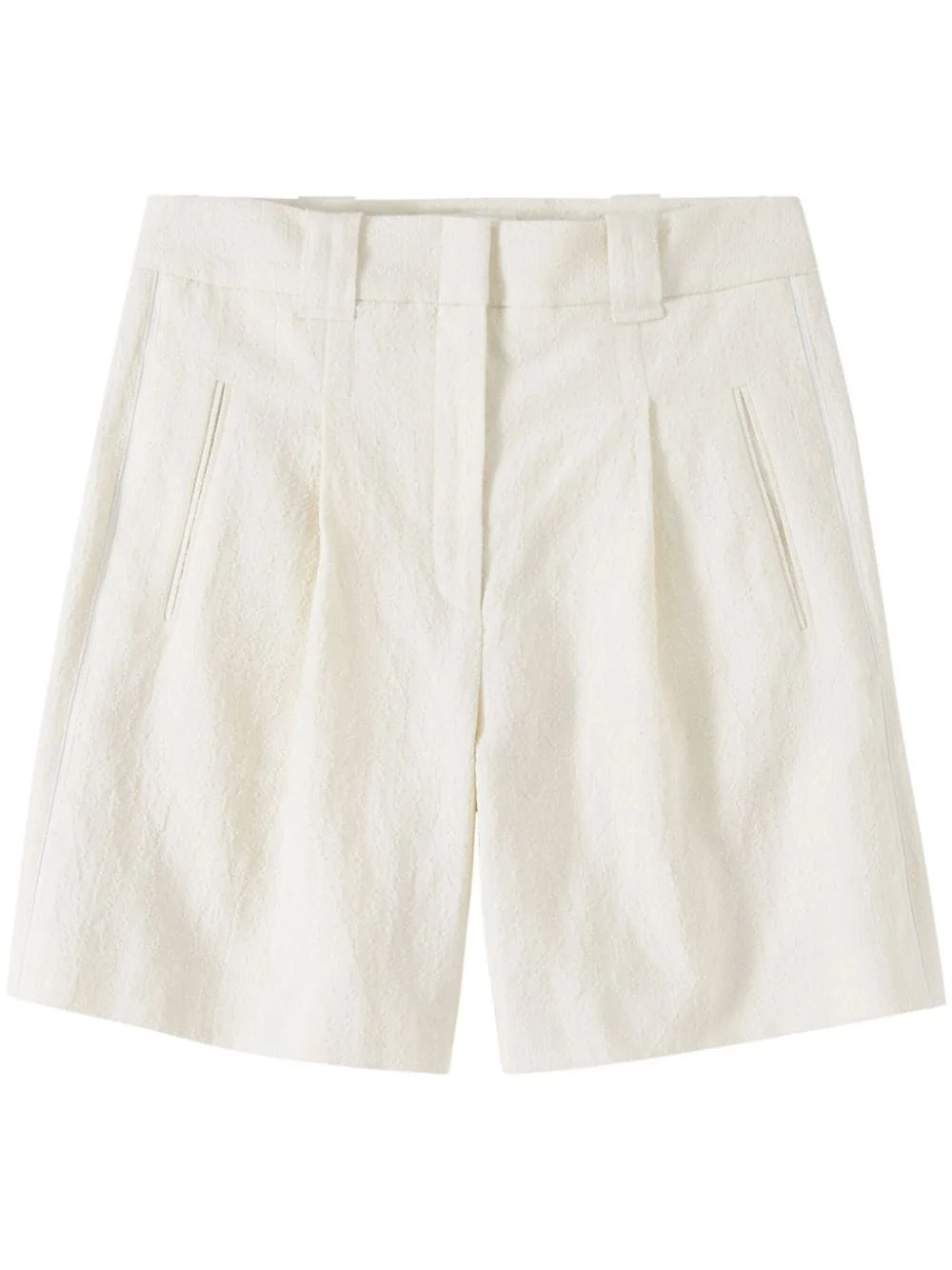 Ralphie knee-length shorts Highlights - Off-white - Textured finish - Pleat detailing - Belt loops - Concealed front fastening - Two side slit pockets - Two rear flap pockets - Knee-length Imported Composition Cotton 74%, Linen/Flax 26% Washing instructions Read Manufacturer Guidelines