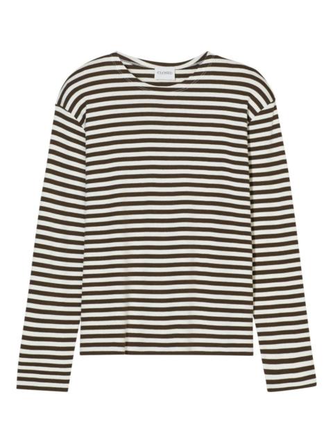 striped long-sleeved T-shirt Highlights - Black/white - Cotton-blend - Horizontal stripe pattern - Round neck - Long sleeves - Straight hem - . Imported Composition Cotton 50%, Modal 50% SIZE & FIT Model measurements Height 5 ft 10 in(1.78 m) Bust/Chest 34.25 in(87 cm) Hips 35.03 in(89 cm) Waist 26.37 in(67 cm) Washing instructions Machine Wash