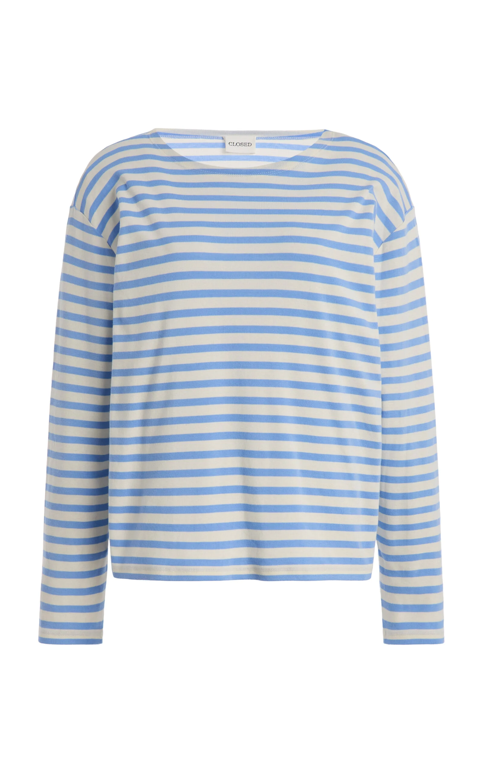 Originally launched in 1968 under C’est ca ('CA' for short) by French fashion designers Marithe and Francois Girbaud, Closed is Italy’s first denim label. Today the contemporary design brand has expanded to sustainably made wardrobe staples that capture the European zeitgeist. This basic long-sleeved shirt features a regular fit and classic length. The fine ribbed jersey made of modal and cotton ensures an exceptionally soft feel. The crew neck and the subtle Closed monogram on the side seam give the shirt its distinctive touch. PRODUCT DETAILS - Spring '26 - Slip on - Composition: 50% cotton, 50% modal - Designer color: Sky Blue - Dry clean - Imported