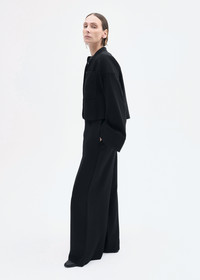 Cropped fluid blouse designed to be worn untucked with high-waisted pants. Elongating wide sleeves allow the fabric to drape beautifully with every movement. Stand collar, patch pocket shoulder, and mother-of-pearl buttons. Details - 97% Viscose 3% Elastane. - 1461MBND-ESSN Size & Fit - Relaxed it with extra long sleeves - Length grade is 1/2 between sizes. - Model is 5'10" 34" bust 26" waist wearing a size small.