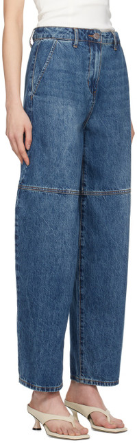 Non-stretch organic cotton denim jeans. Fading throughout. · Paneled construction · High-rise · Belt loops · Two-pocket styling · Zip-fly · Darts at back waistband Supplier color: Indigo