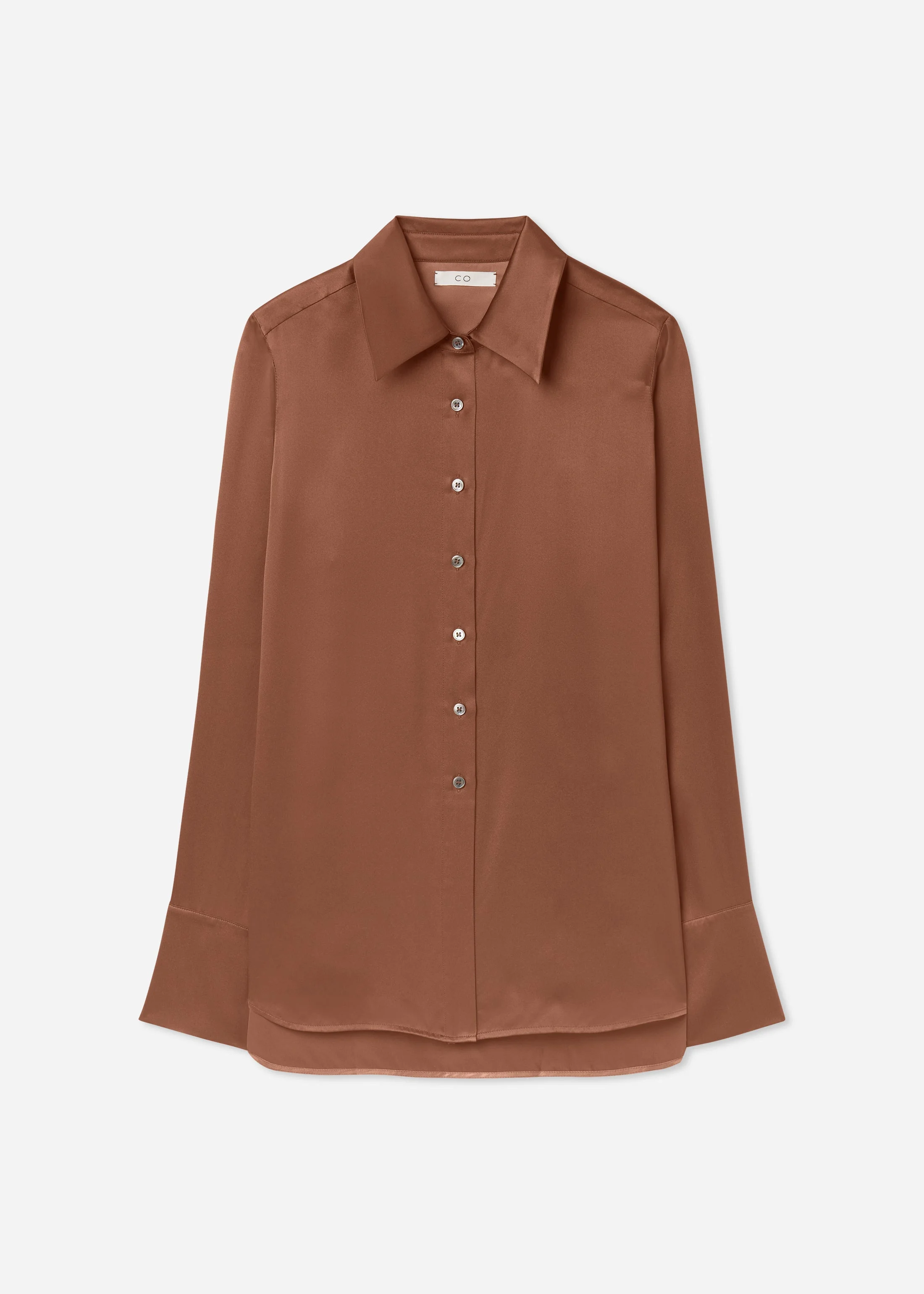 This elegant button-down shirt in ivory is crafted from sumptuous 16mm silk satin, offering a relaxed fit that drapes beautifully for effortless sophistication. The French seams enhance durability while maintaining a refined finish, and the dark horn buttons add a subtle contrast, elevating the classic design. Perfect for both professional settings and elegant casual occasions, this blouse combines comfort with timeless style. Details - Style Number: 1866CSSC-CORE Size & Fit - True to size. - Measures 32" in length.