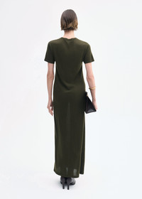This finely knit, lightweight T-shirt dress embodies understated elegance. Designed to fall gracefully, it includes short sleeves and a ribbed neckline, offering a polished reinterpretation of a timeless basic. Details - Olive - 100% Cashmere - Dry Clean Only - 7178BCM-PF25 Size & Fit - Gauge 16 GG - Relaxed fit - Model is 5'10" and wears a size small