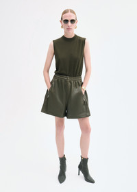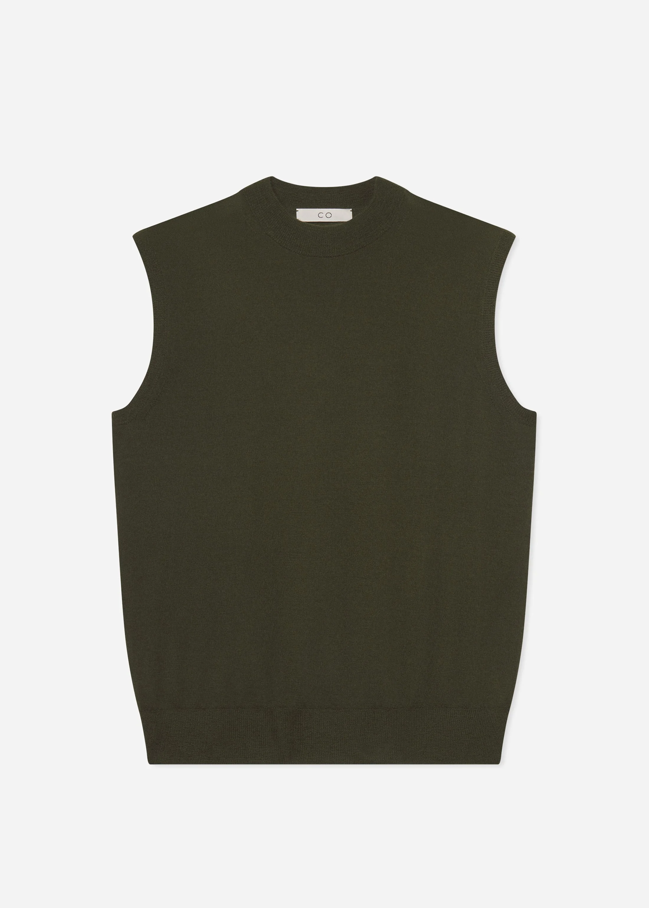 Crafted from our signature baby cashmere, this sleeveless shell tank in a refined olive hue offers unparalleled softness and warmth. The delicate ribbing at the neckline, armholes, and hem adds subtle texture and structure, enhancing its elegant silhouette. Perfect for layering or wearing alone. Details - Olive - 100% Cashmere - 7171BCM-PF25 Size & Fit - True to size. - Model is 5'10" and wears a size small