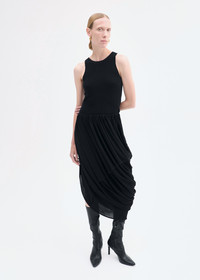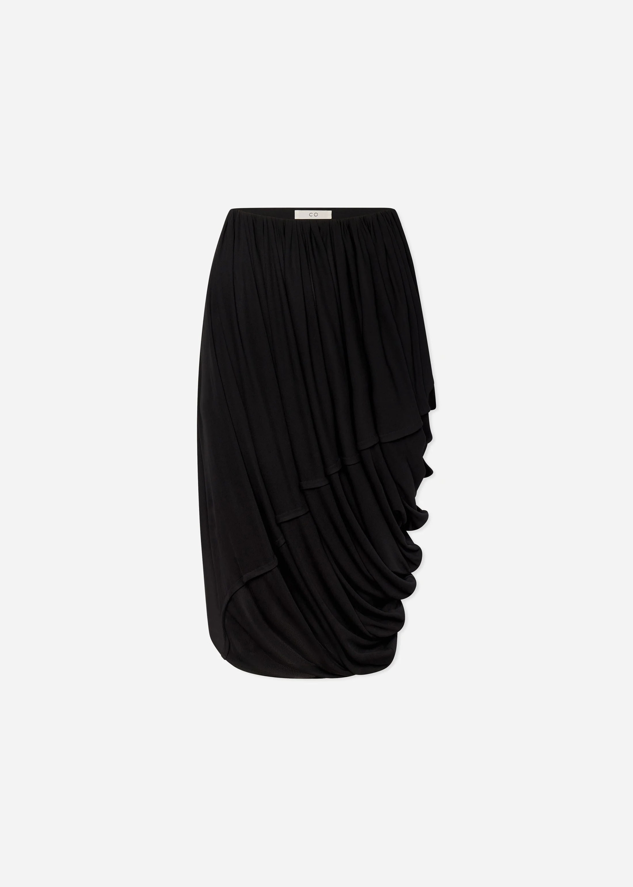 Effortless structure in a fluid silhouette. Crafted from soft viscose, this sculptural skirt features artful draping and a clean, tapered hem. Designed to sit on the low waist with an invisible zip closure, it falls to approximately 15" in length. Details - Black - 100% Viscose - 3383SJVI-PF25 Size & Fit - Designed to sit at the low waist. S= 28” in waist circumference. 2” difference between sizes. - Model is 5'10" and wears a size small